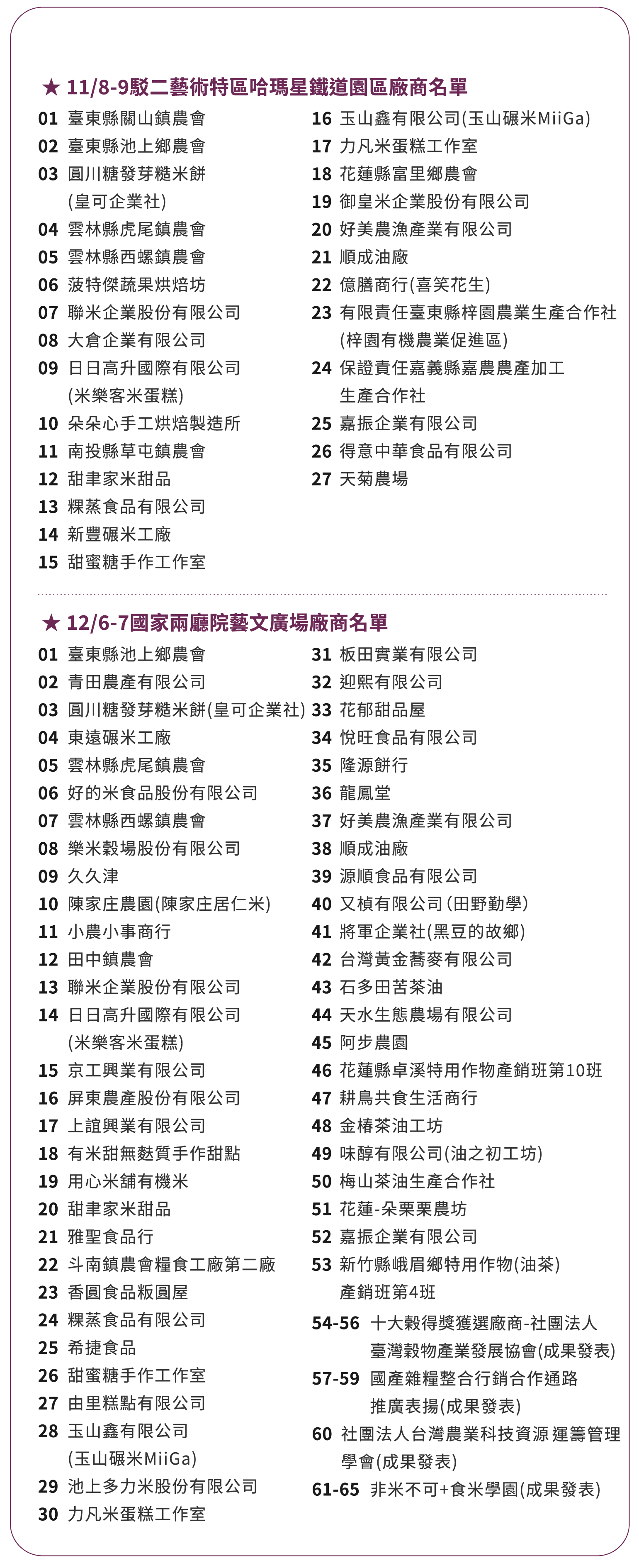 展售廠商名單
