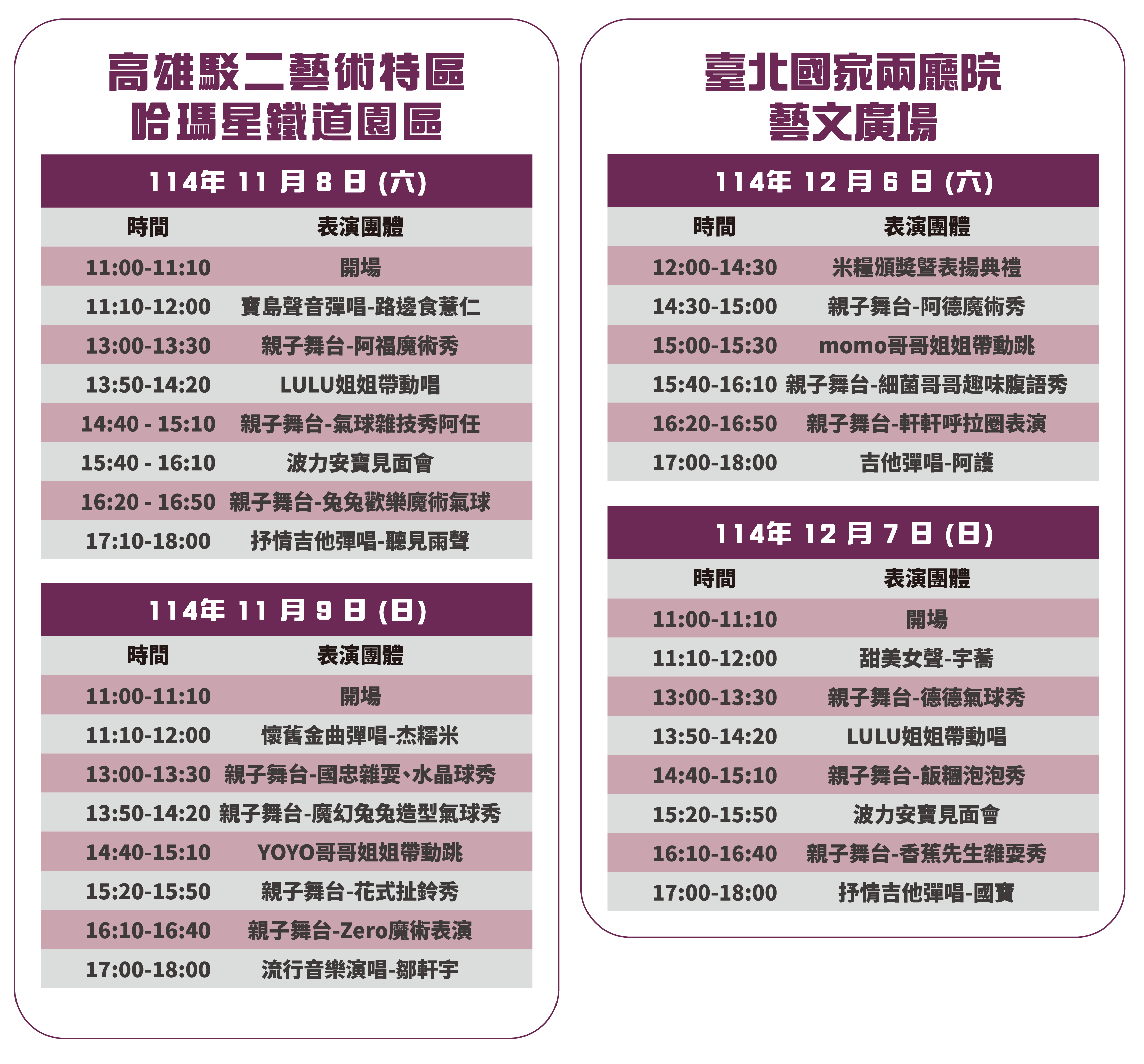 舞台時刻表